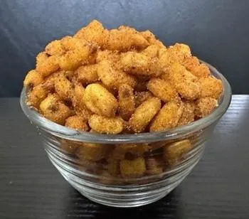 Toasted Corn is golden colored, oil roasted, coated with a dry powder seasoning (topical seasoning application).